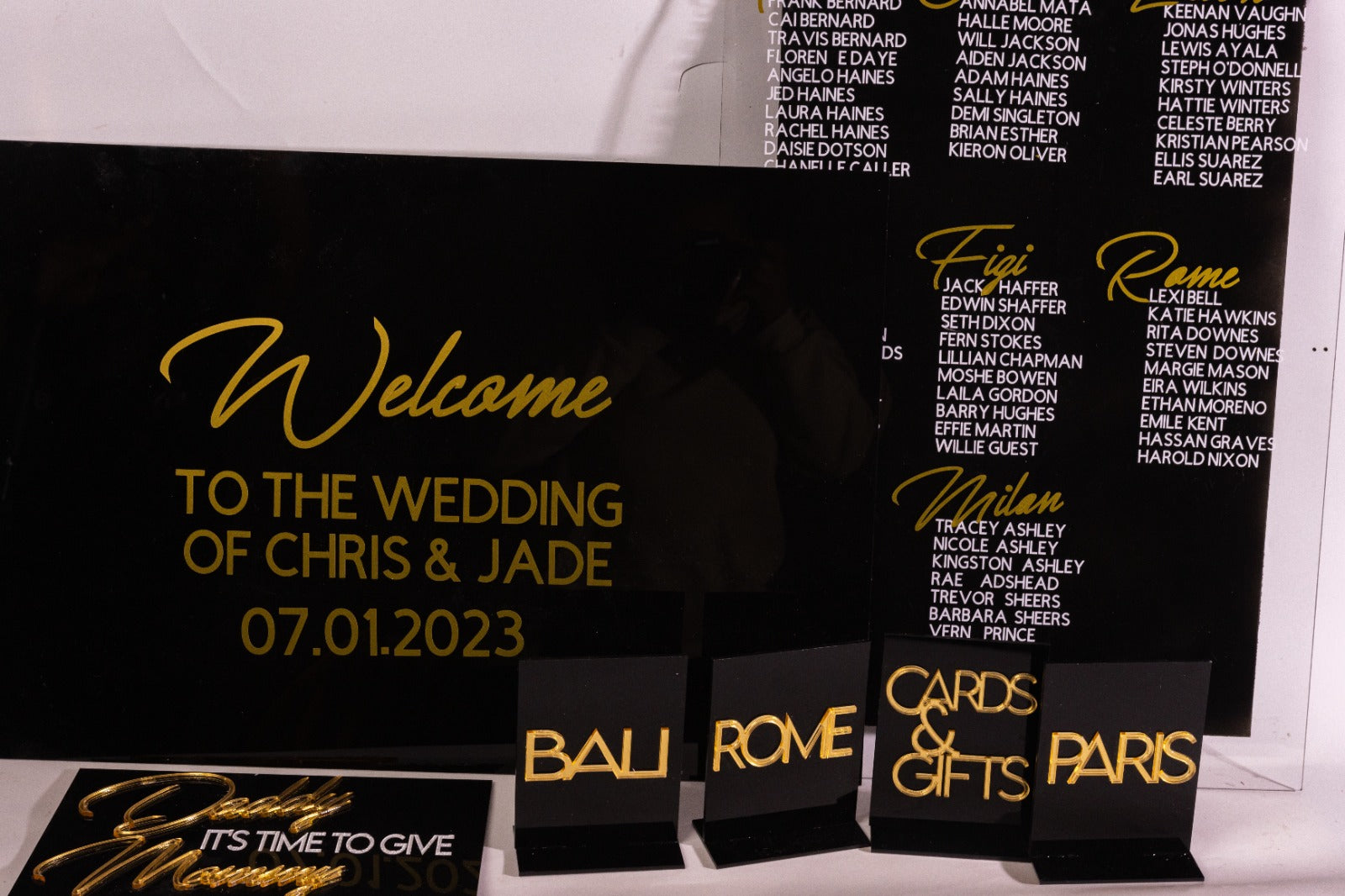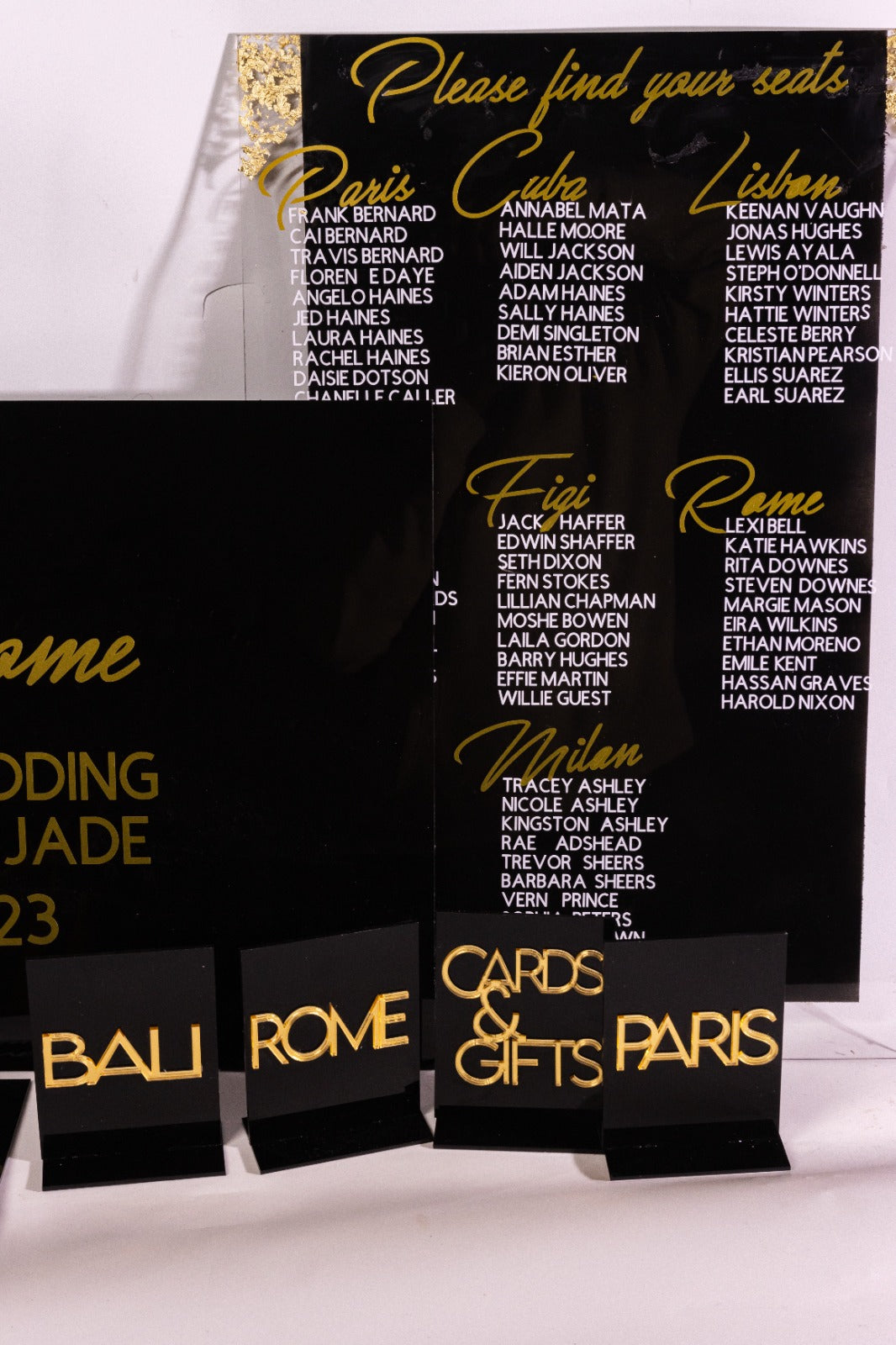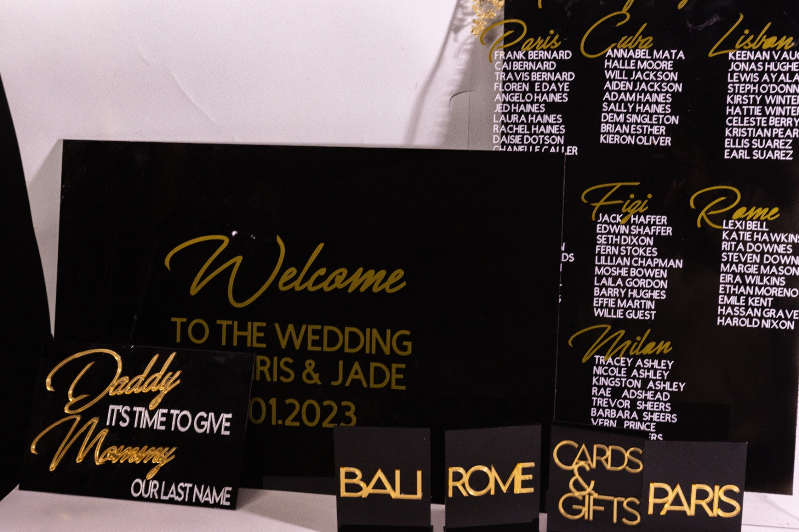Add a unique touch to your event decor with these customizable wedding stationery. You can create your own distinctive welcome sign Seating chart and table numbers/names for your ceremony.